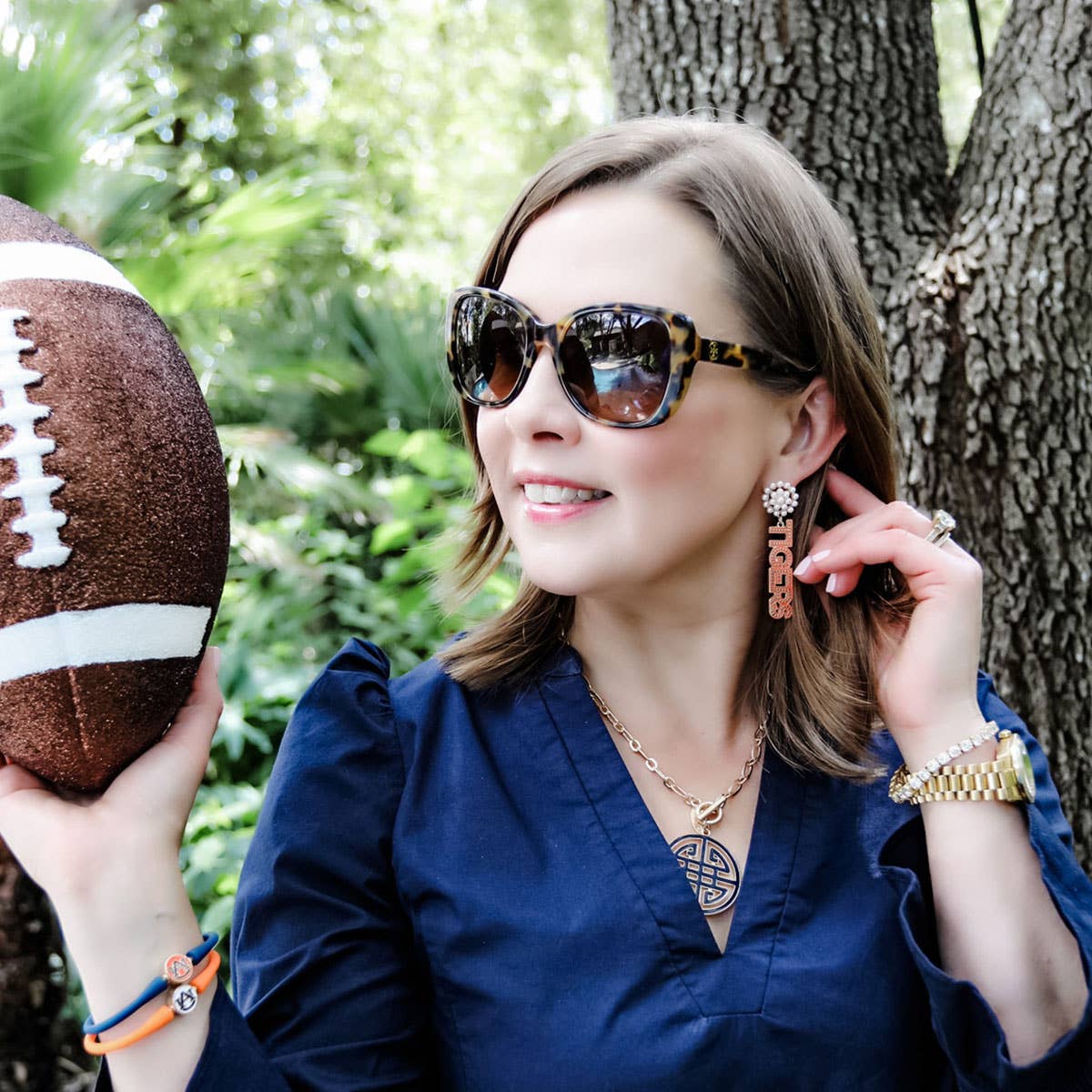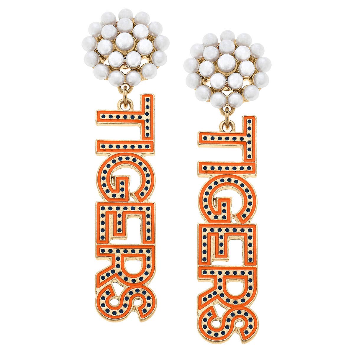 Auburn Tigers Pearl Cluster Dotted Enamel Drop Earrings