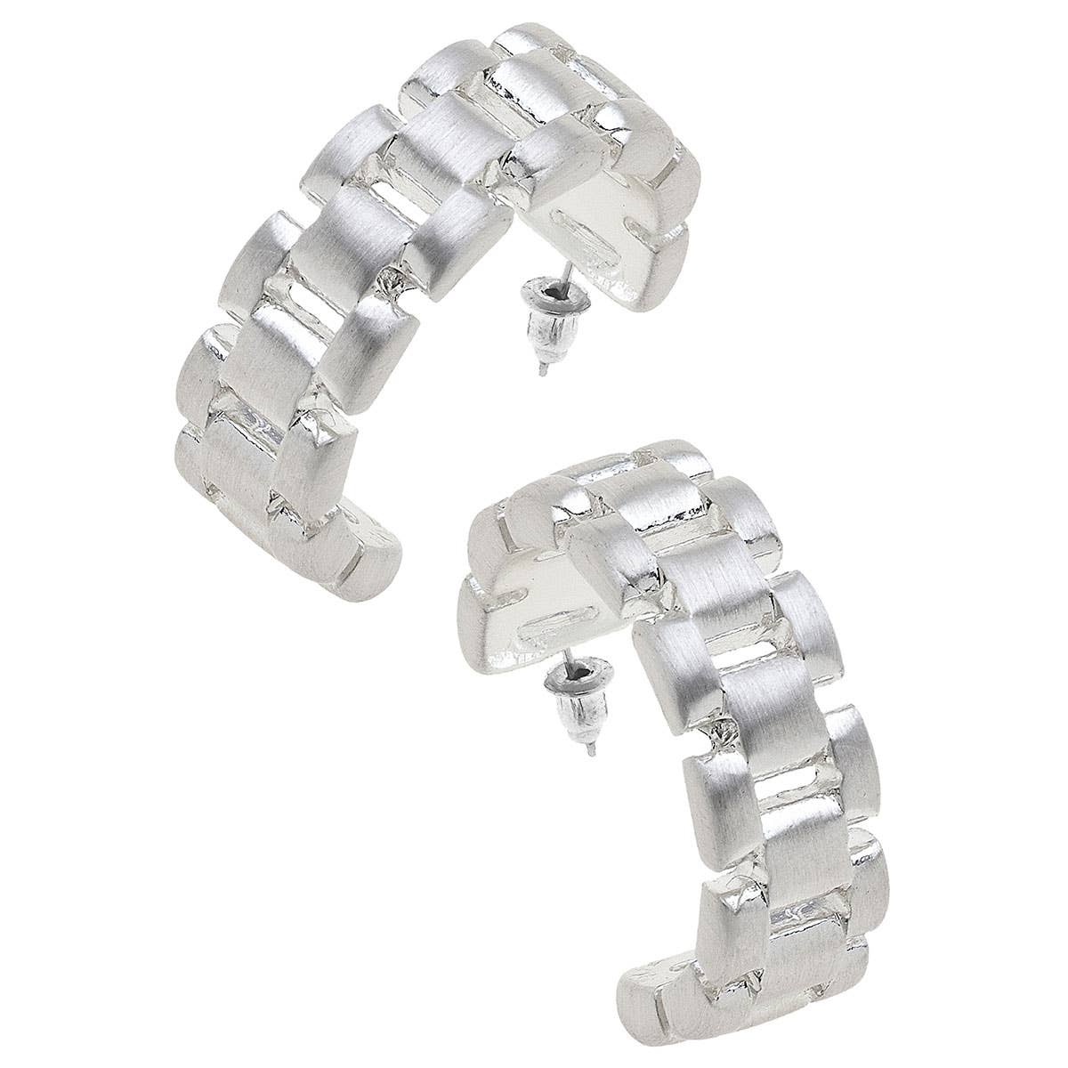 Carter Watchband Open Hoop Earrings in Satin Silver