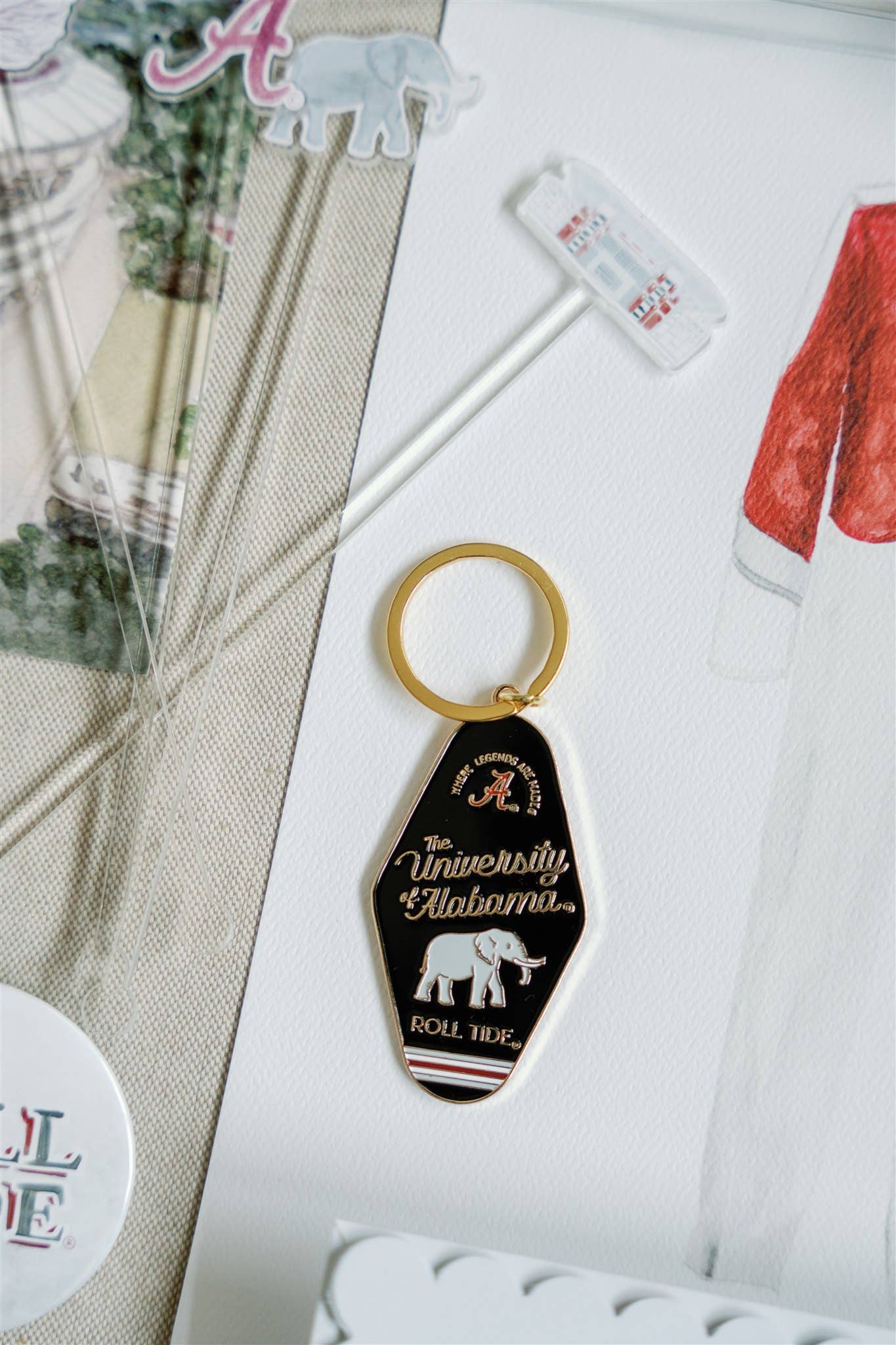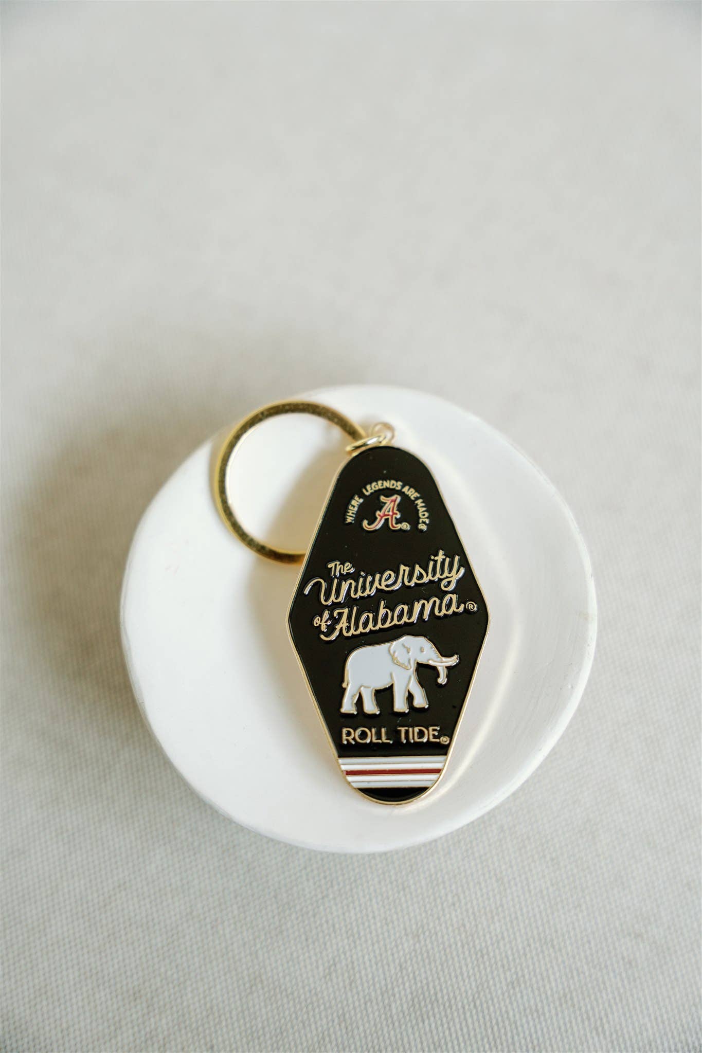 Enamel keychain featuring Alabama's battle cries and elephant mascot!